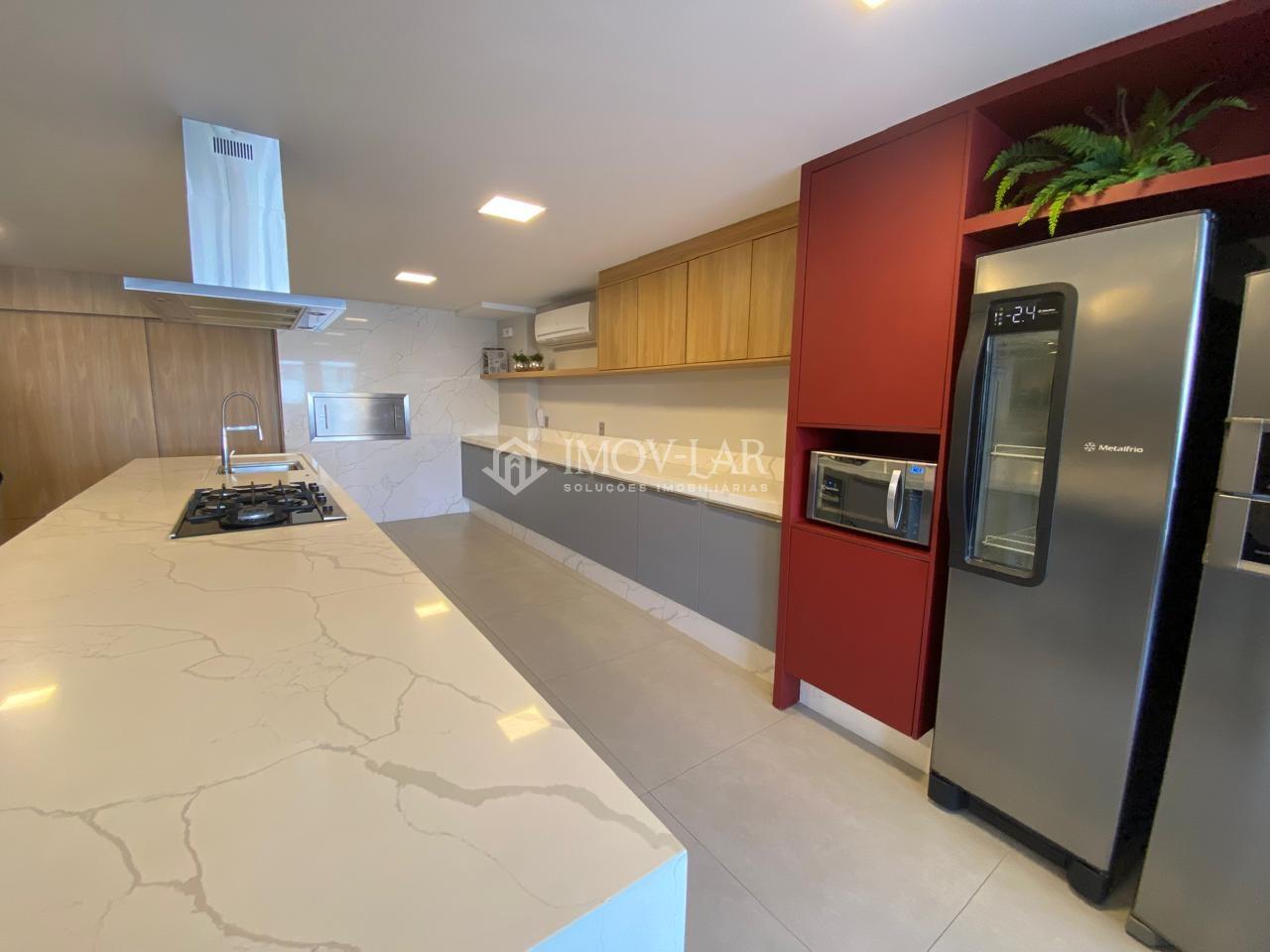 Cozinha ampla, ficando os eletros como, geladeira, frigo bar, fogão, maquina de lavar louça;